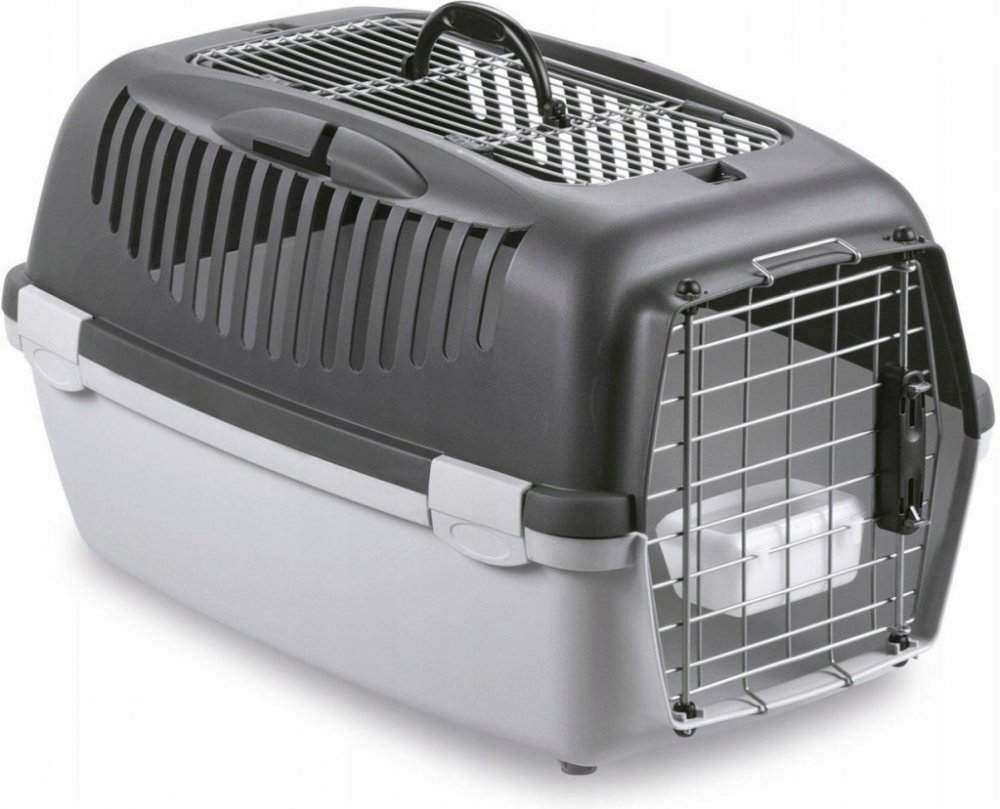 Pro psy a kočky do 10 - 12kg, víko a vana se spojují klipsy, kovová přední dvířka se zámkem, nastavitelné pravé nebo levé otevírání dvířek, rukojeť pro snadné přenášení přepravky, otevíratelná mřížka na vrchu pro kontakt s mazlíčkem, dva úchyty pro bezpečnostní pás v autě, miska 500 ml s okraji proti vylévání, vnitřní rozměry 58,5x36,5x33,5cm, vnější rozměry 61x40x38cm.