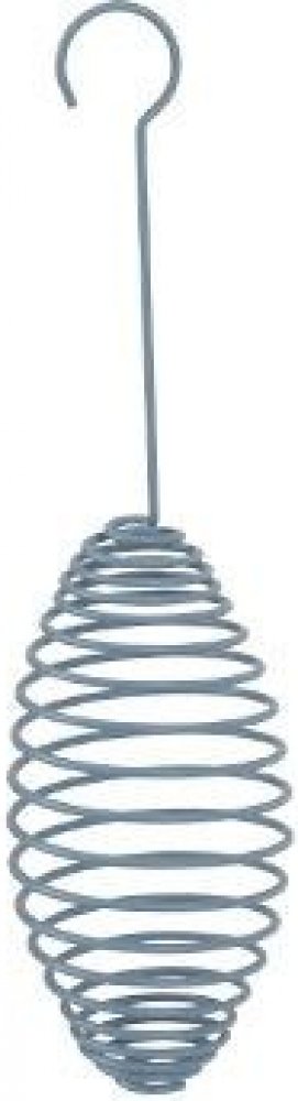 Závěsné kovové krmítko ve tvaru spirály na lojové koule. Výška spirály 15cm.