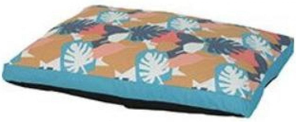 Pohodlný polštář se snímatelným potahem pro psy s tropickým vzorem.