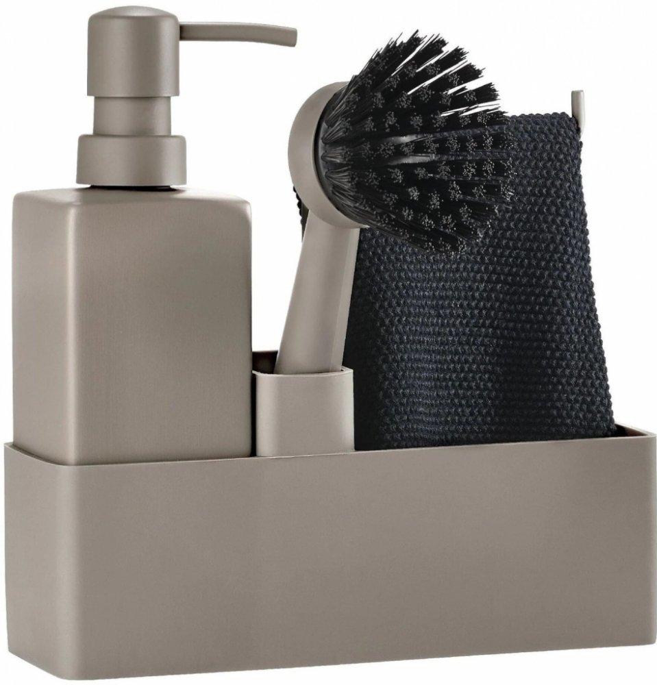 Oblíbená utěrka na nádobí s ručníkem "vše v jednom" od společnosti Zone Denmark. Dávkovač mýdla je vyroben z masivní keramiky a odkládací část je vyrobena z nepoškrabatelného a snadno omyvatelného silikonu. Kartáček může stát samostatně a hlavici kartáčku lze vyměnit, takže budete mít vždy čerstvý kartáček. Vneste do své kuchyně funkčnost a styl se sadou na mytí nádobí Singles s utěrkou v šedé barvě. Tato sada je nejen praktická, ale také stylová, takže se skvěle hodí do každé moderní kuchyně. Sada na mytí nádobí s utěrkou Singles Taupe Čistá kuchyně začíná správnými nástroji. Tato sada na mytí nádobí od společnosti Zone Denmark obsahuje vše, co potřebujete k mytí nádobí: dávkovač mýdla z masivní keramiky, utěrku a kartáč na mytí nádobí se silikonovým držákem. Elegantní a funkční design Sada na mytí nádobí Singles má elegantní a minimalistický design, a proto se skvěle hodí do každé moderní kuchyně. Když ji nepotřebujete, může kartáč stát samostatně vedle dřezu a hlavu kartáče můžete vyměnit, abyste měli vždy po ruce čerstvý kartáč. Vlastnosti: Kompletní sada: Obsahuje dávkovač mýdla, utěrku a kartáč na mytí nádobí. Odolná a vysoce kvalitní: Vyrobeno ze silikonu a keramiky. Moderní design: Elegantní a minimalistický design, který se hodí do každé kuchyně. Praktické: Kartáč může stát samostatně a hlavice kartáče je vyměnitelná. Barva: Taupe (hnědá) Specifikace: Vnitřní strana: 1: - Materiál: silikon/keramika - Barva: hnědá - Rozměry: 19,50 cm x 6,60 cm x 21,00 cm