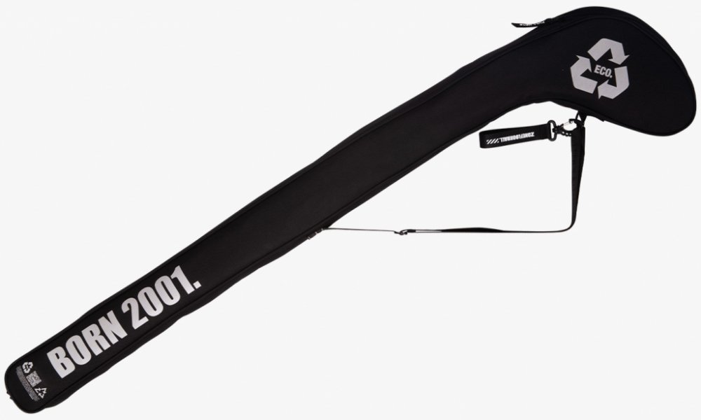Vak na florbalové hokejky vyrobený ze 100% recyklovaného materiálu pojme až 3 hole o maximální délce 104 cm.  Reflexní potisk pro lepší viditelnost, nastavitelný ramenní popruh a kapsa na zip na telefon. Vak je navíc vybavený klíčenkou.