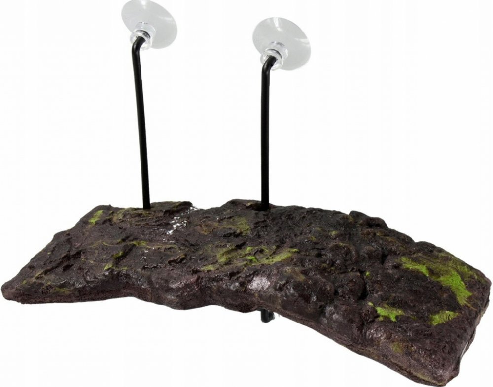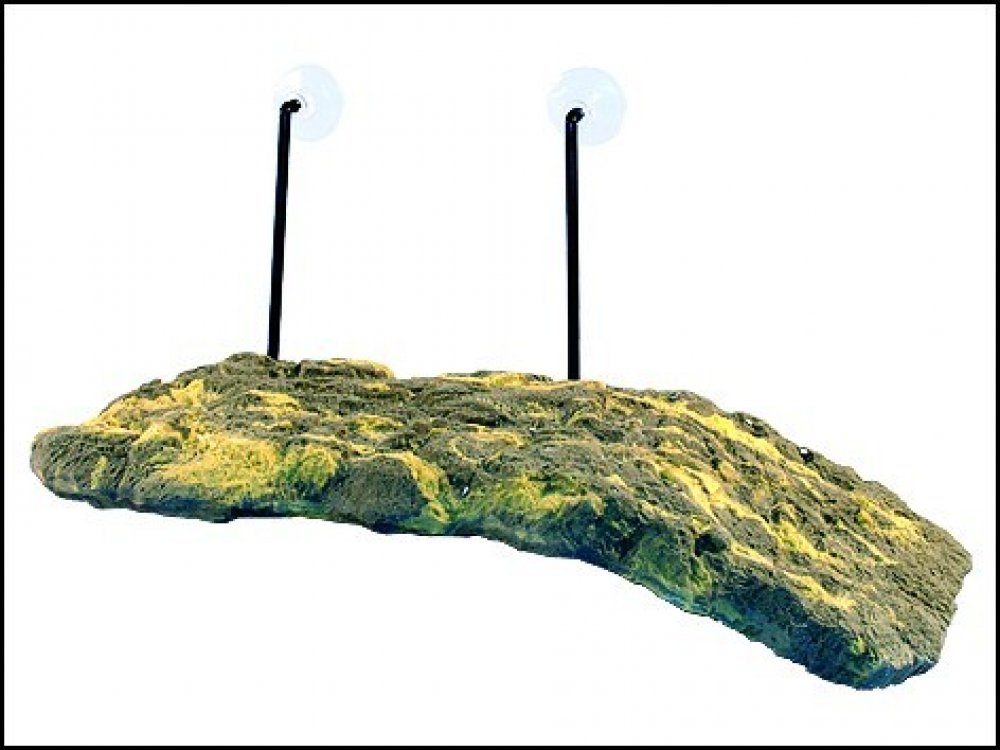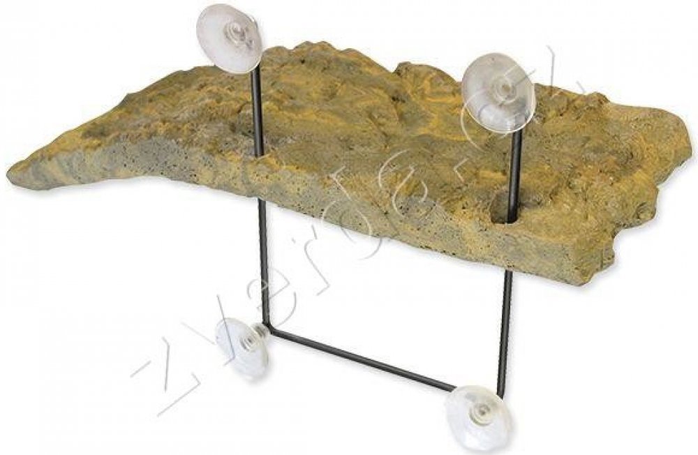 Plovoucí ostrůvek pro želvy. Unikátní konstrukce umožňuje ostrůvku přizpůsobit se kolísání vodní hladiny. Ponorná rampa umožňuje želvám snadný přístup na ostrůvek. Díky této plošince mohou želvy v klidu absorbovat teplo z tepelných zdrojů a potřebné UVA záření. Může být rovněž použit pro vodní mloky a žabky.