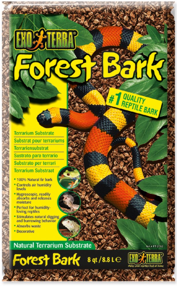 UPOZORNĚNÍ: Neumisťujte podestýlku do krmných částí terária, nechtěné spolknutí kůry může živočichům způsobit zácpu či jiné zažívací problémy.