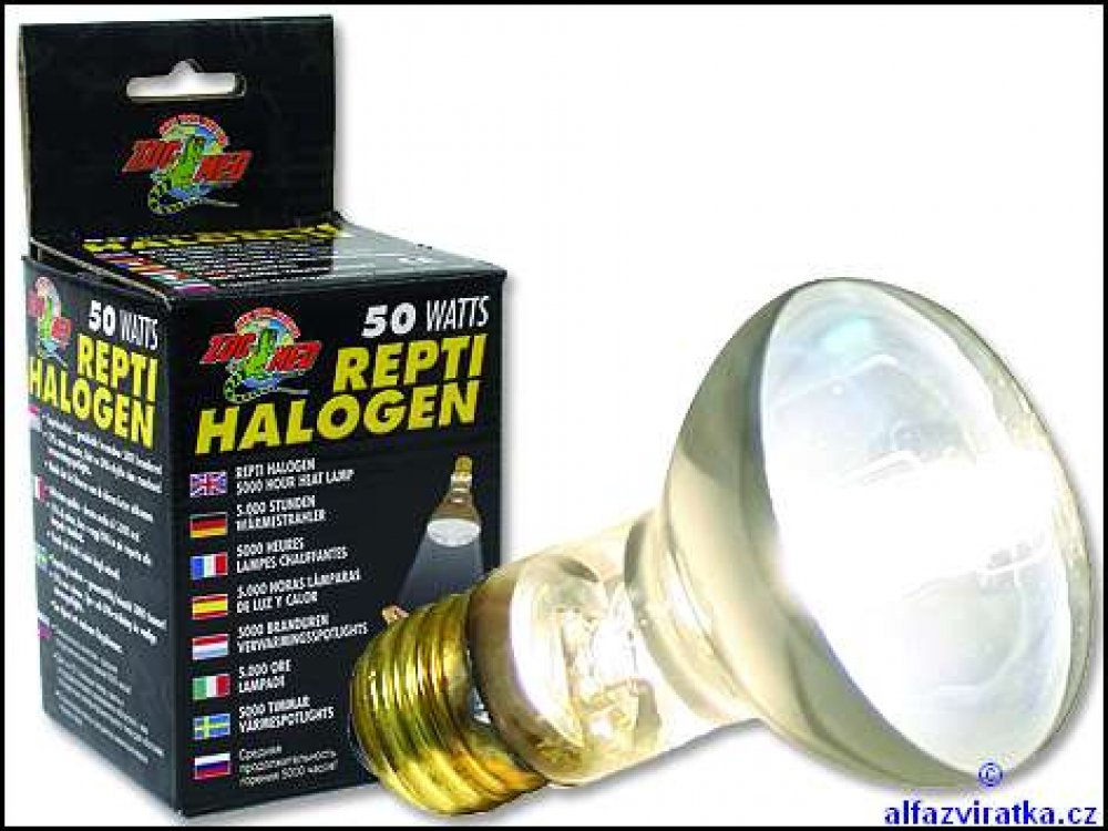 Halogenová lampa pro 24 hodinový zdroj tepla pro všechny druhy plazů. Zoomed REPTI je jedno z nejlepších umělých osvětlení na trhu, které se používá pro chov plazů. Vysoce kvalitní halogenové žárovky speciálně vyrobené pro použití do terária. Životnost žárovky je až 5 tisíc hodin. Pro vytvoření ideálních podmínek v teráriích je zapotřebí mnoho viditelného světla, dostatek UV a tepla, jen tehdy se nám plazi ukazují ve svých plných barvách a jejich chování je přirozené. Velkým plusem těchto lamp je jejich relativní energetická nenáročnost, v porovnání s odvedeným výkonem.