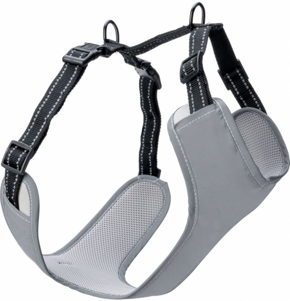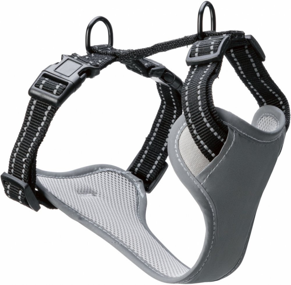zoofari® Postroj pro psy Vlastnosti Vyrobený z recyklovaného materiálu Žádné zatížení krku díky rozložení tahu na hrudník Reflexní ozdobné prvky 2 páry vyměnitelných suchých zipů s nápisem Široká zadní část s měkkou podšívkou pro příjemné nošení Nastavitelný hrudní a břišní pás Charakteristika produktu ;} Typ vodítka: - Barva: modrá; červená; černá Max. váha psa: - Velikost: obvod hrudníku: S cca 38 – 50 cm, M cca 51 – 67 cm, L cca 70 – 86 cm, XL cca 90 – 119 cm Materiál: plast; ocel Rozměry: cca 2 x 12 x 22 cm; obvod hrudníku cca 38 – 50 cm Hmotnost: cca 89 g