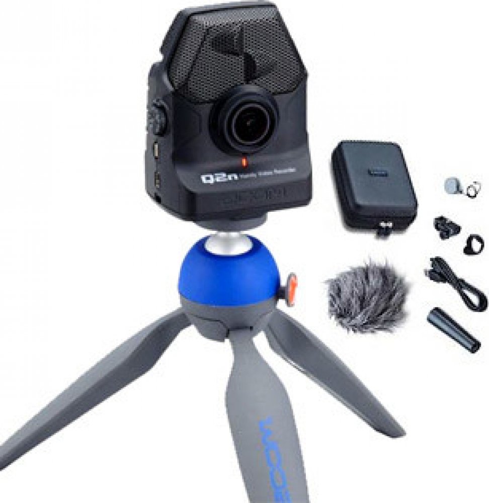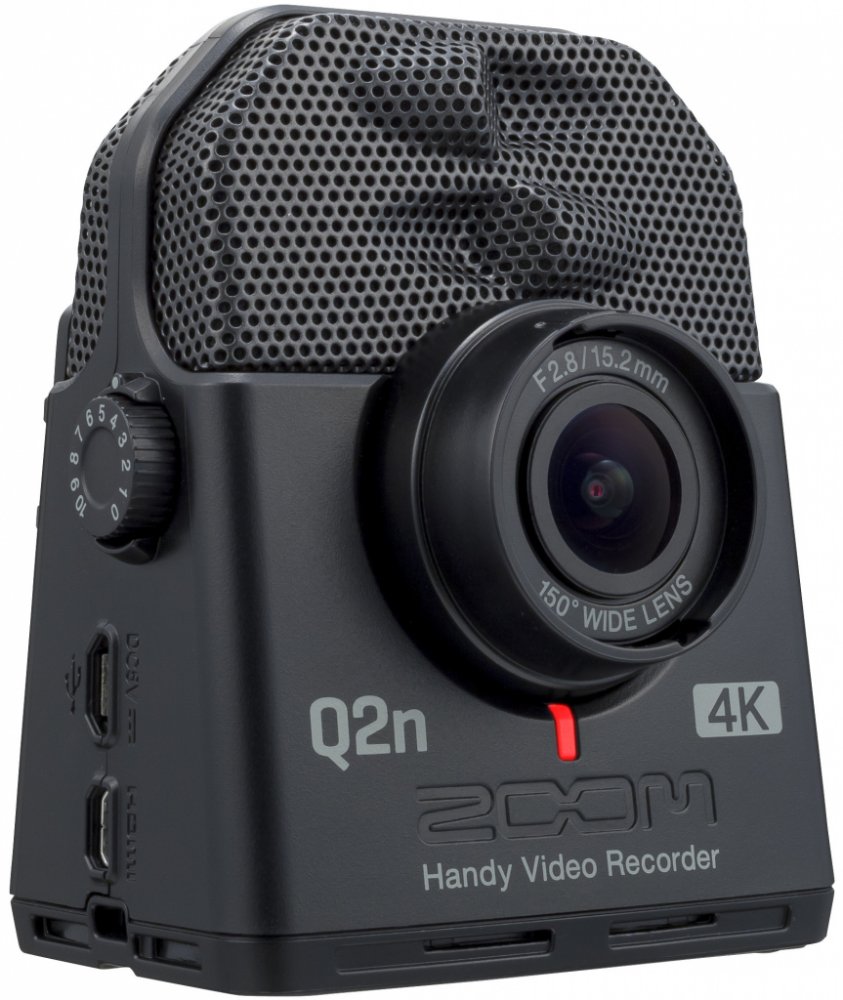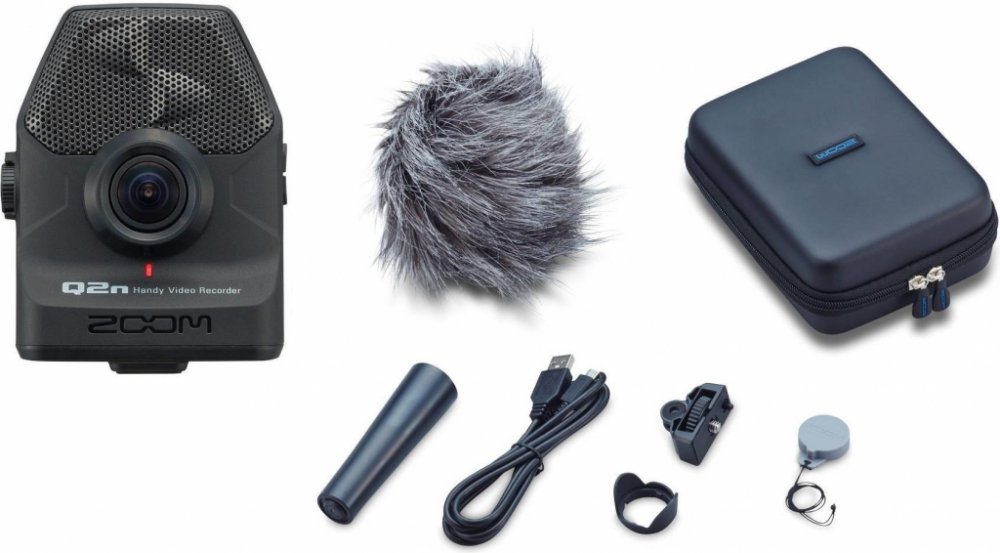 Kapesní rekordér Zoom Q2n je přenosný audio a video rekordér, bez kterého se v dnešní době, kdy je na sociálních sítích video hlavním komunikačním kanálem, neobejde žádný hudebník. HD nahrávky ve studiové kvalitě máte nyní na dosah ruky. Zvuk je snímán v kvalitě 24-bit/96 kHz pomocí dvou X/Y mikrofonů, které snesou akustický tlak až 120 dB. Můžete tak pořizovat záznamy vystoupení nebo zkoušek, aniž by docházelo ke zkreslení zvuku. Kamera snímá v širokém úhlu 160° a nahrává v 720p nebo v HD 1080p při 24 nebo 30 fps. Q2n se adaptuje na různé světelné režimy, takže obraz bude výborný, ať se ocitnete venku nebo na vystoupení v setmělém klubu. Díky LCD displeji na zadní straně navíc vždy přesně víte, jak váš záběr vypadá. Díky kompaktním rozměrům navíc můžete Zoom Q2n nosit všude s sebou. Vám ani vašim fanouškům tak již neuteče žádný okamžik hodný zaznamenání. • Přenosný audio a videorekordér• Vysoce kvalitní širokoúhlý objektiv 160° (F2.0/16,6 mm)• 10 voleb „Scene“ pro záznam v různých světelných podmínkách• Vestavěný stereofonní mikrofon konfigurace X/Y• Bez zkreslení si poradí s hladinami akustického tlaku až 120 dB SPL• Použitelný jako samostatný audio rekordér s rozlišením záznamu až 24 bit / 96 kHz• 5 nastavení úhlu záběru (FOV)• Nahrávání přímo na karty Micro SD/SDHC/SDXC až do velikosti 128 GB• Barevná LCD obrazovka• Podporuje dva režimy HD videa: 720p a 1080p• Přenosová rychlost videa až do 24 Mbps zajišťuje lepší kvalitu obrazu • Obnovovací frekvence obrazu: 1080p / 30fps HD, 1080p / 24fps HD, 720p / 30fps HD, 720p / 24fps HD• Video výstup na konektoru HDMI pro HDTV kompatibilní zařízení• Nahrávání videa ve formátu MOV (se zvukem) • Ovladač úrovně po vzoru analogových přístrojů, se znázorněním úrovně na displeji• 2barevná stavová LED kontrolka na objektivu• Funkce automatického nastavení zesílení (auto gain) ovládá úroveň vstupního signálu• Stereofonní vstup pro připojení externích zařízení s napájením po sběrnici – Plug-in Power • Výstup pro sluchátka / linkový výstup pro okamžitý monitoring zvuku • Low-cut filtr pro eliminaci rušivých zvuků• Rozhraní USB pro live streamování a přenos dat• Kompatibilita se streamingovými aplikacemi USTREAM Producer, Flash Live Media Encoder, Skype a dalšími známými aplikacemi tohoto druhu• Funkce webové kamery a USB mikrofonu po připojení k počítači nebo zařízení iPad• Doba provozu cca dvě hodiny se dvěma bateriemi typu AA• Volitelná sada příslušenství APQ-2n