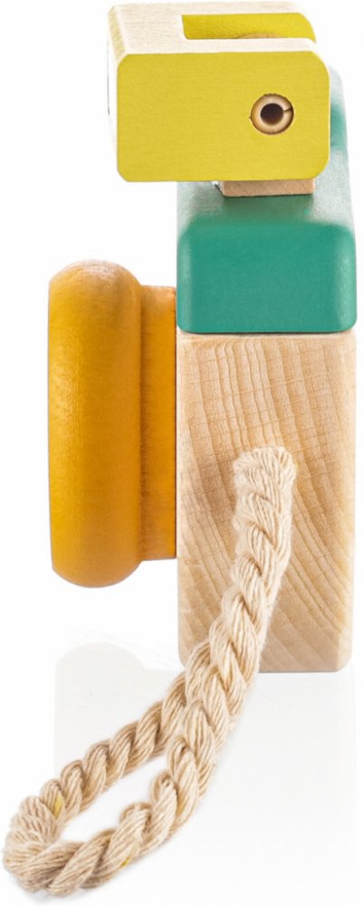 Kvalitní a krásně zpracovaný dřevěný fotoaparát potěší každého malého fotografa. Hračka je lehká a má kompaktní rozměry, díky čemuž se pohodlně drží v ruce. Pro snadné přenášení a manipulaci je fotoaparát vybaven pevným poutkem.