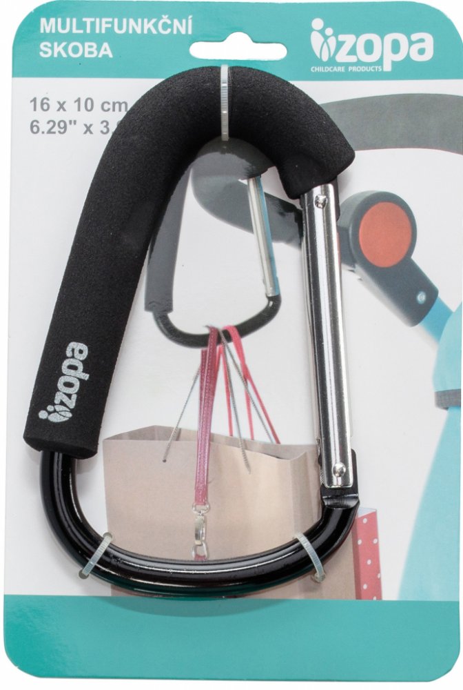 Univerzální neklouzavá skoba, kterou lze připevnit na madlo kočárku nebo na nákupní vozík. Snadno na ni zavěsíte či připevníte jakoukoliv drobnost. Dejte pozor, abyste kočárek nepřetěžovali!