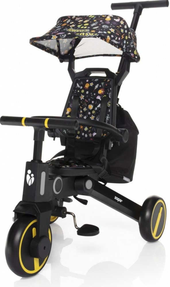 Tříkolka je pohodlnější alternativou ke kočárku a zároveň mezikrokem k odrážedlům a kolům. Díky výškově nastavitelné vodící tyči a funkci vypnutí řídítek plně nahradí kočárek a dítě si při jízdě užije více zábavy. Odnímatelná šlapátka se dají využít jako pedály, kdy dítě řídí tříkolku samo, nebo pro menší děti jako opěrka nohou. Komfortnější jízdu má na starost podsedák i opěrka zad, ty jsou opatřeny polstrováním, jenž je odnímatelné pro snadnější čistění.