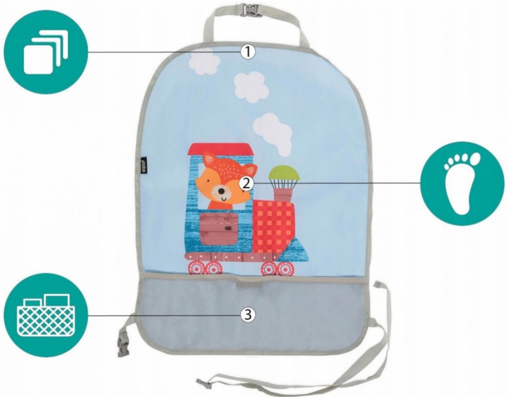 Při cestování autem společně s dětmi určitě oceníte praktický ZOPA organizér na sedadlo s motivem zvířátek. Jeho připevnění na sedadlo je velmi snadné a rychlé. Členitý organizér ZOPA nabízí jednu velkou a prostornou kapsu. Organizér poslouží také jako ochrana proti okopání. Motiv lištičky, která jede ve vlaku, dítě jistě zaujme. Díky ZOPA organizéru bude mít vaše dítko při cestě autem o zábavu postaráno a vy se tak můžete v klidu věnovat řízení. Klíčové vlastnosti ZOPA organizéru na sedadlo, zvířátka Připevnění na přední sedadlo je velmi snadné S roztomilým motivem lišky ZOPA organizér do auta na sedadlo nabízí jednu velkou kapsu Ochrana proti okopání sedadel Vyrobeno z kvalitní a odolné tkaniny ZOPA organizér pro klidnou jízdu autem společně s dítětem