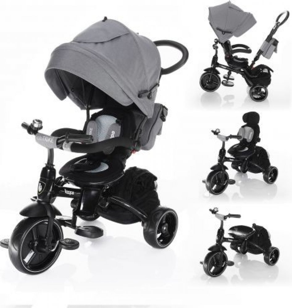 Tato exkluzivní tříkolka pro děti od 6 do 36 měsíců byla vyvinuta ve spolupráci se značkou Qplay. Jako vlajková loď naší řady tříkolek ZOPA je výjimečná nejen z hlediska vzhledu, ale i užitných vlastností. Díky snadnému otáčení sedátka, které je polohovatelné, může do jisté míry fungovat jako velmi zábavná náhrada za kočárek. Přičemž o zajištění bezpečí děťátka se postarají 5bodové bezpečnostní pásy, brzda a stříška s UV ochranou.
