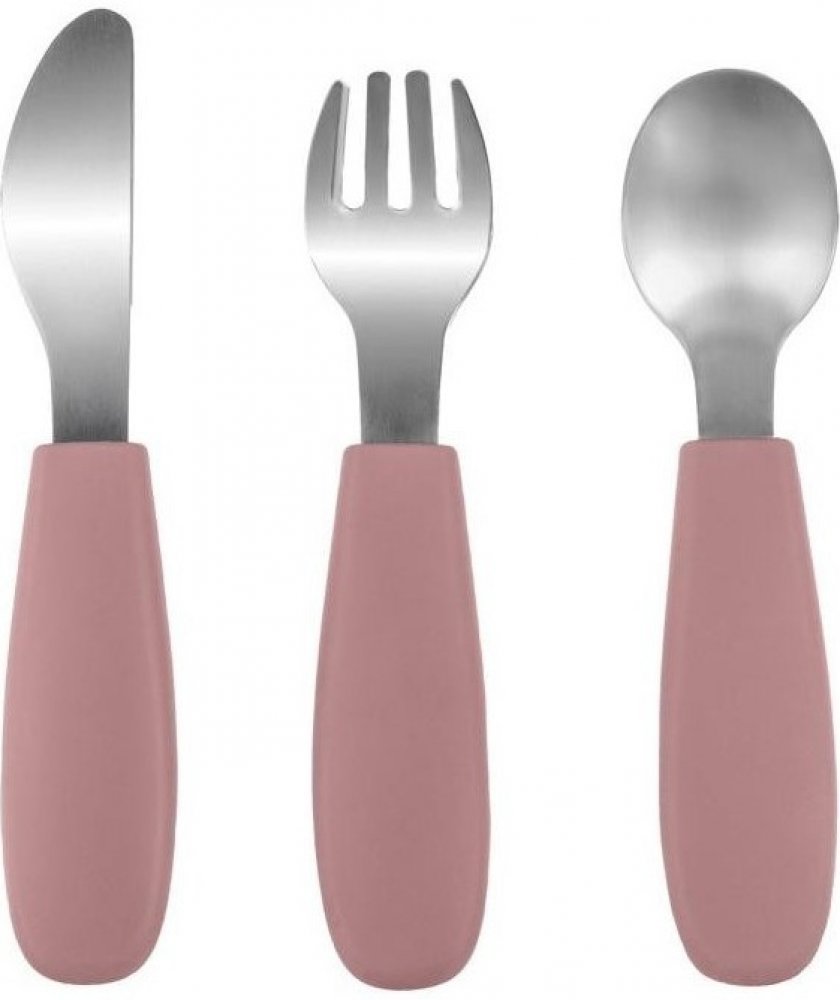 tvarovaným silikonovým příborem, který je přímo navržen pro malé dětské ručičky.