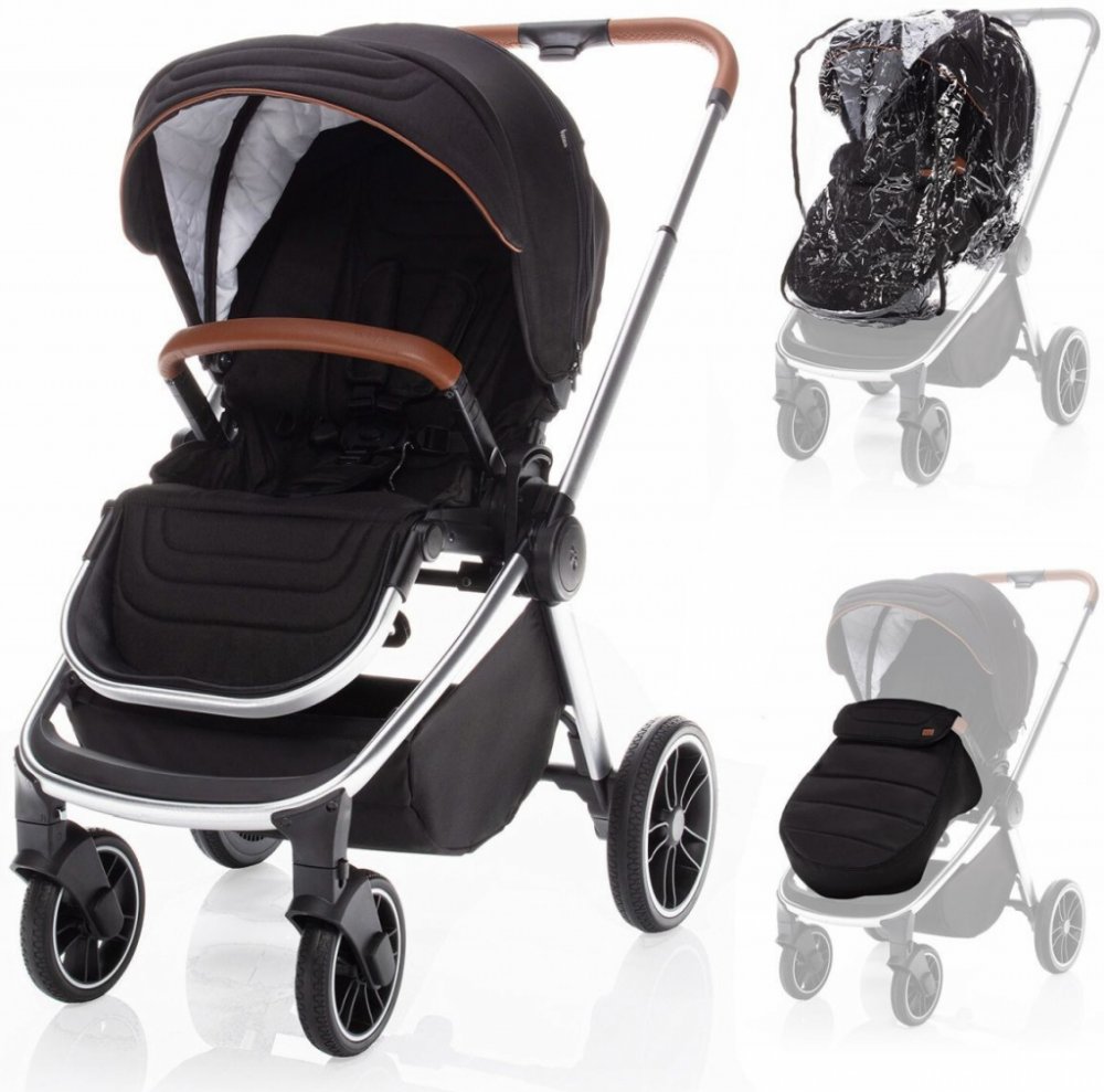 Součástí sportovního kočárku je pláštěnka a nánožník. Hlubokou korbu a adaptéry na autosedačku lze dokoupit zvlášť.Určený pro děti do 22 Kg