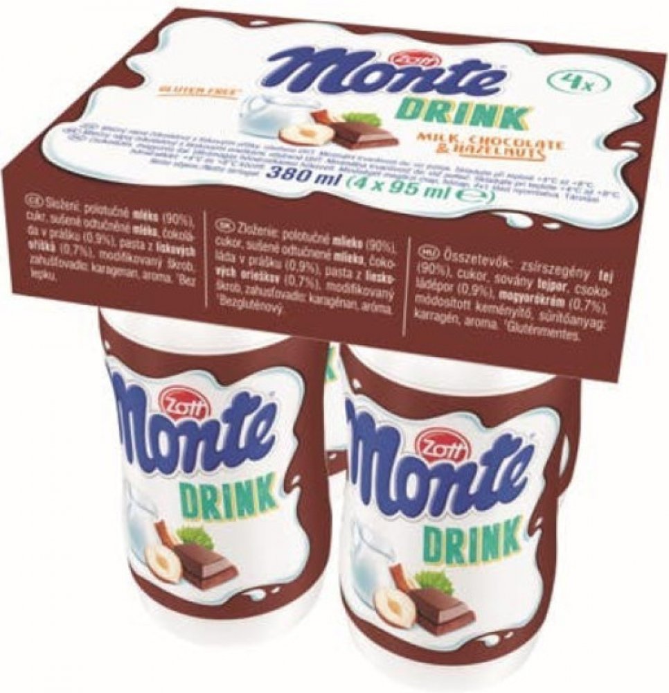 Zott Monte drink mléčný nápoj čokoládový s lískovými oříšky 4 x 95 ml