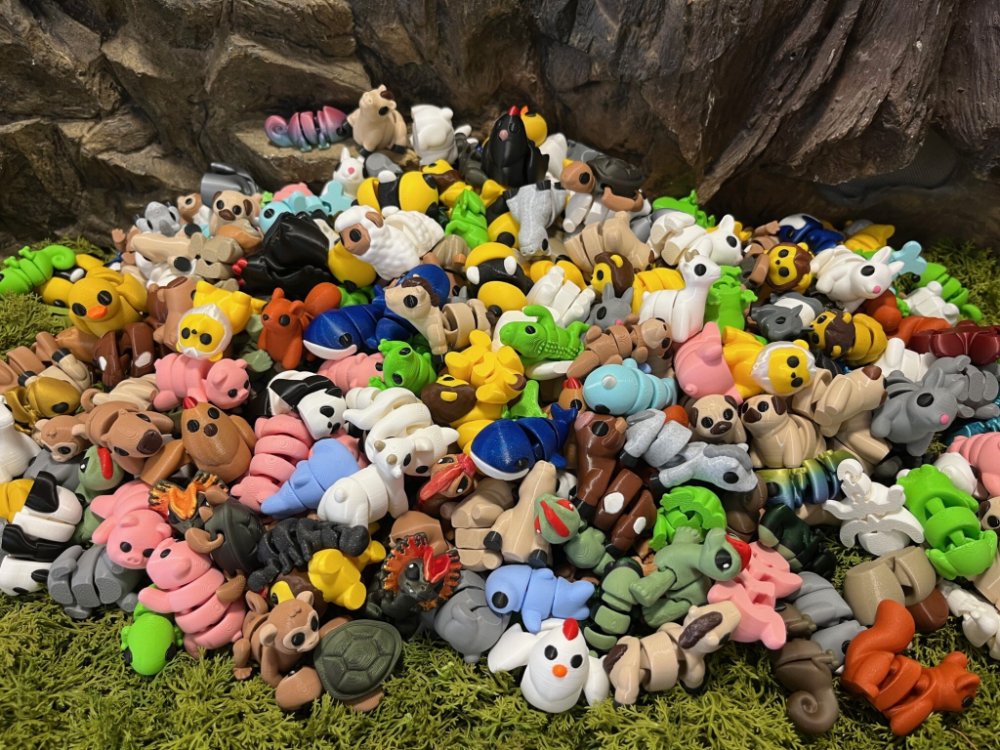Hravá směs oblíbených mini figurek – zvířátka i dinosauři v různých barvách a efektech. Tiskneme v ČR z českých rostlinných PLA filamentů. Každý kousek je lehký, příjemný do dlaně a hodí se na poličku, pracovní stůl i jako osobní talisman.
