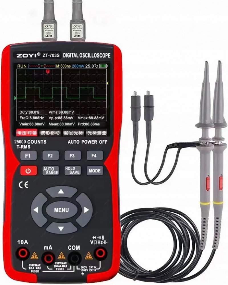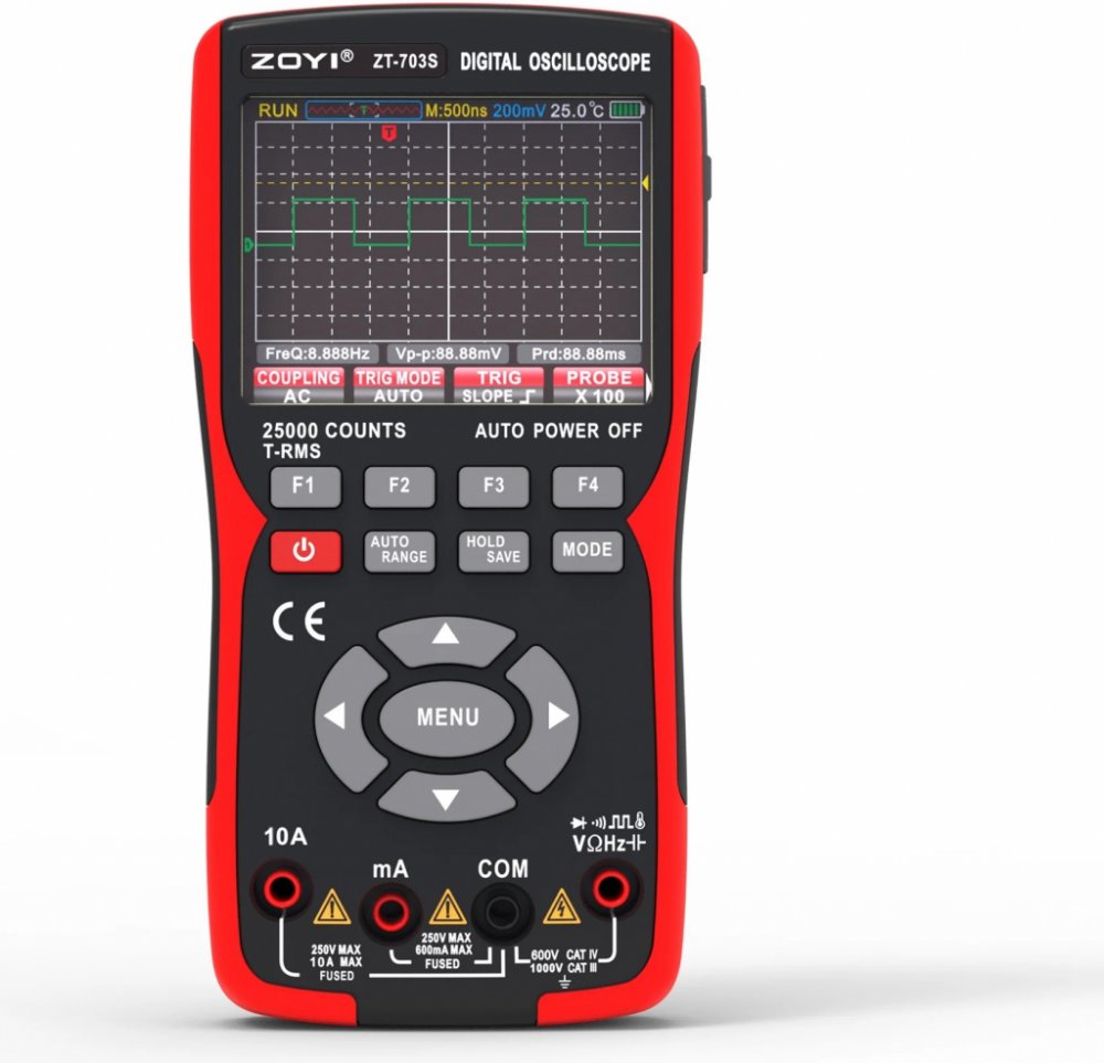 ZOYI a ZOTEK ZT-703S nabízejí šířku pásma až 50 MHz a podporují široký rozsah elektronické analýzy. Působivá rychlost vzorkování 280MSa/s, funkce přes ZOYI a ZOTEK, zajišťuje zachycení přenosu ve vysokém rozlišení. Deset osciloskopů od společností ZOYI a ZOTEK bylo rozpoznáno s ohledem na výkon a funkce v 3,5palcovém IPS displeji s výhledem, uzavřeném v dvojitě vstřikovaném pouzdře, což zajišťuje větší přenosnost a použití.