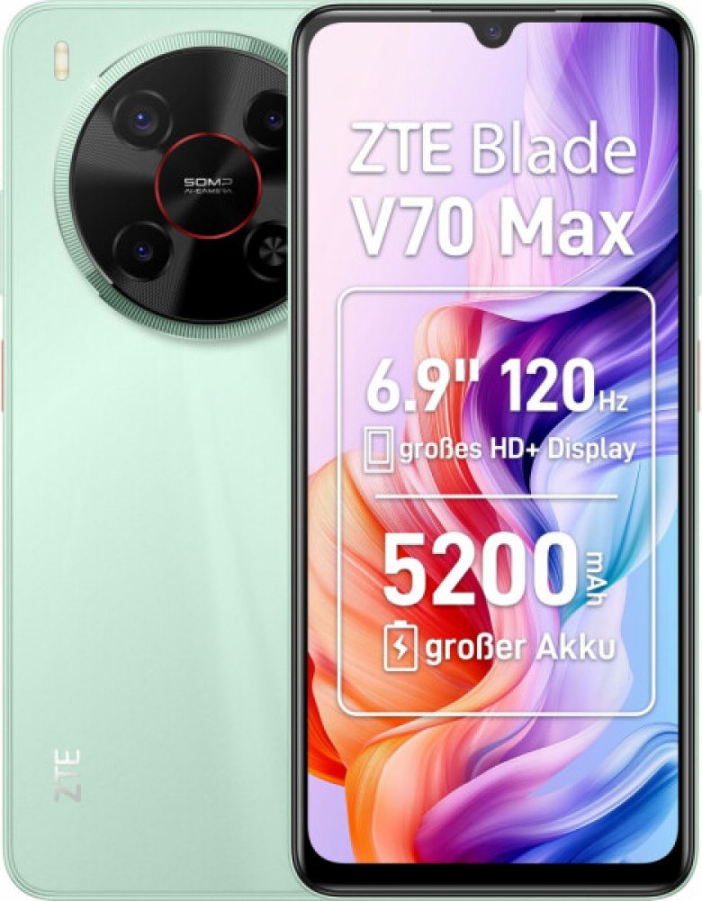 The ZTE Blade V70 Max in the stylish colour Lake Green offers you an elegant design that stands out with its modern and fresh look. Equipped with the powerful Unisoc T606 processor and a 64 MP triple camera, you can take razor-sharp photos and videos and enjoy smooth performance. The generous 6.67-inch Full HD+ display ensures an impressive visual experience, while the 5000 mAh battery provides long runtimes. Perfect for users looking for a reliable smartphone with an impressive design and powerful features.