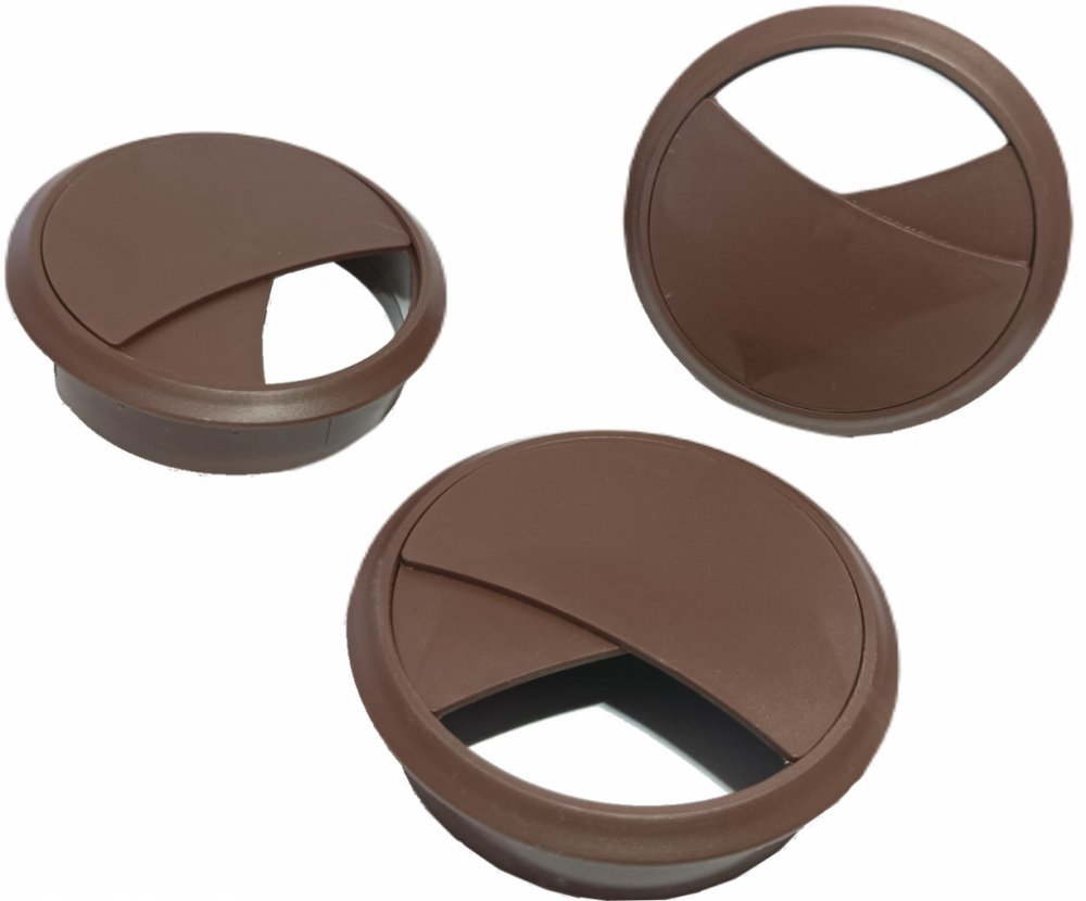 Třídílná kabelová průchodka (otočné víko) 70 mm slouží jako elegantní řešení k bezpečnému vedení kabelů skrz stoly či další nábytek. Díky jejímu otočnému víku si můžete sami nastavit velikost otvoru pro kabely.