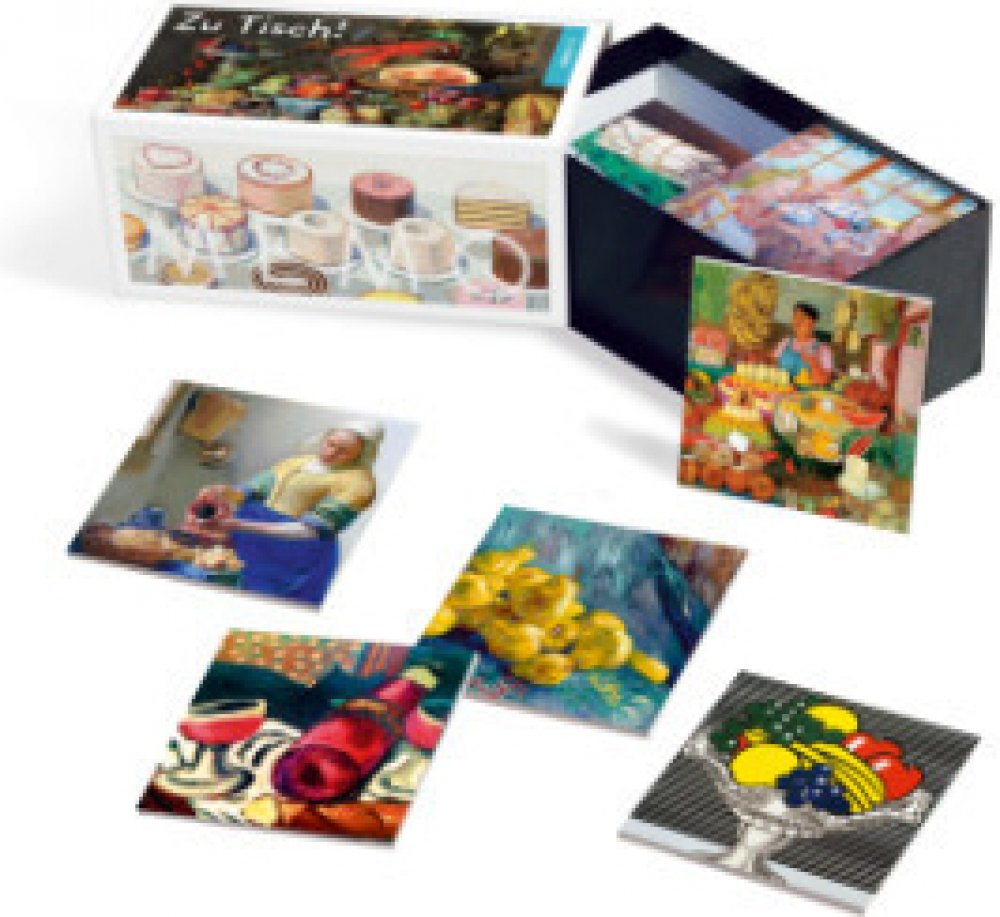 DAS GUTE ESSEN IN DER GESCHICHTE DER MALEREIPrunkvolle Banketts der flämischen und holländischen Malerei des 17. Jahrhunderts, schlichte Mahlzeiten in der Kunst der Moderne und nicht zuletzt Köstlichkeiten, die von zeitgenössischen Künstler:innen in Szene gesetzt wurden - in 36 verführerischen Motiven führt dieses Memo durch die Malereigeschichte. Ein Gedächtnisspiel, das nicht nur den Sehsinn anspricht!SPIELERISCHER KUNSTGENUSS FÜR DIE SINNEStillleben gehören schon seit vielen Jahrhunderten zum Repertoire der Maler:innen. Besonderer Beliebtheit erfreuen sich Mahlzeitenstillleben, auf denen oft reich gedeckte Tische zu sehen sind, beladen mit reifem Obst und knackigem Gemüse, knusprigem Brot und Gebäck, würzigem Käse und anderen Köstlichkeiten. In der niederländischen Stilllebenmalerei hatten die gemalten Delikatessen meist eine symbolische Bedeutung und die Gemälde sorgten in den Häusern ihrer betuchten Besitzer für Achtung und Ansehen. Glänzende Trauben, Prunkpokale und leuchtend rote Hummer dienten aber auch dem ästhetischen Genuss - mit ihr feierten die Künstler:innen die illusionistischen Fähigkeiten der Kunst. Diese große Tradition des Stilllebens lässt sich in der Kunst bis heute finden. Allerdings ist die Gattung weder an eine kunstgeschichtliche Epoche noch an eine bestimmte Strömung gebunden. Nicht nur Clara Peeters und Jan Davidsz. de Heem malten fantastische Stillleben, auch Vincent van Gogh, Claude Monet, Paul Cézanne, Paula Modersohn-Becker, Olga Costa oder Roy Lichtenstein, fanden delikate Sujets, wie die kleinen Kärtchen in diesem Spiel zeigen. EIN MEMO ZUM ANBEISSEN!Saftige Feigen, zuckersüße Törtchen, frischer Spargel und geräucherter Schinken - hier werden Ihnen die Augen übergehen! Zu entdecken gibt es berühmte Klassiker der Stillleben-Malerei und überraschende Details: die opulent gedeckten Tische, angerichtet mit Blumen und Silbergeschirr, das karge Abendbrot aus Makrele und Brot, dampfende Speisen, die gerade erst serviert werden, und die ein oder andere Naschkatze. Finden Sie alle Paare?Sprachen: Deutsch, Englisch