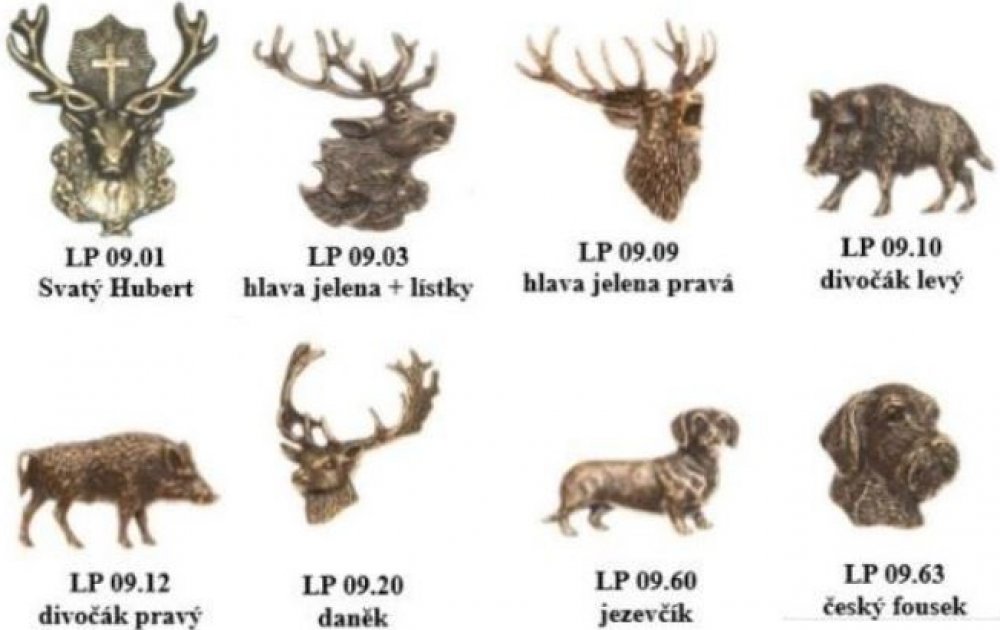 Myslivecké odznaky na kloboukMyslivecké odznaky na klobouk či klopu, různé motivy. Jednobodové zapínání.