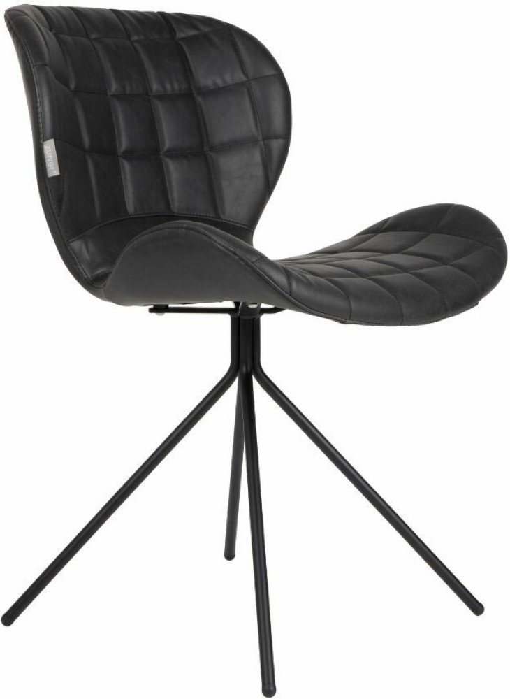 Elegantní vintage designová jídelní židle ZUIVER OMG LL. Základnu sedáku z umělé kůže v černé barvě tvoří překližka pokryta tenkou vrstvou pěny, díky které si budete moci vychutnat úžasné pohodlí, a to beze strachu pádu, které Vám zaručí pevná ocelová podnož v elegantním černém provedení.