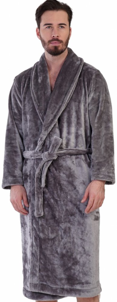 Župan pro muže huňatý šedý v dlouhé délce s límcem