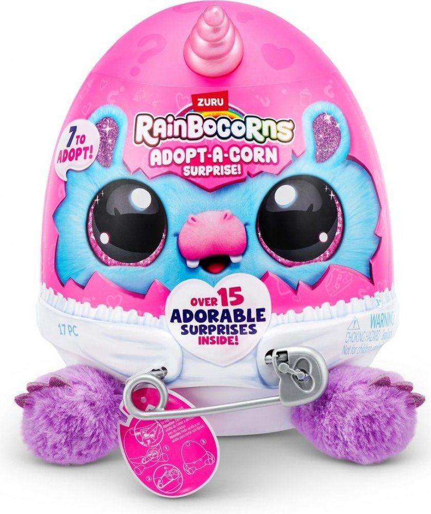 Nejroztomilejší malé mládě Rainbocorns se plazí kolem Rainboville a potřebují vaši lásku a péči! Vyjměte Adopt-A-Corn z plenky pro dobrodružnou zábavu a připněte zpět, jakmile bude čas na odpočinek. Nezapomeňte na dudlík! Udělejte to oficiální podpisem adopčního certifikátu.