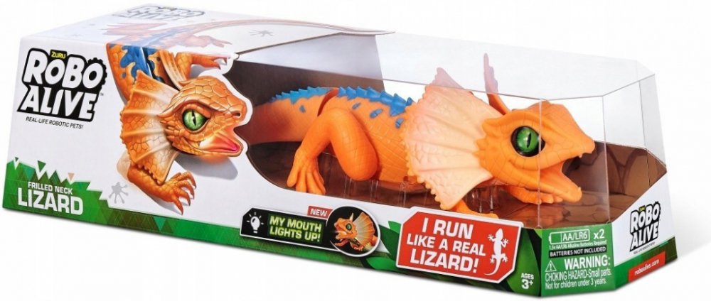 Robo Alive Robotická oranžová ještěrka. Oranžová ještěrka s modrými skvrnami vypadá jako živá. Může skutečně chodit, běhat a pohybovat hlavou.