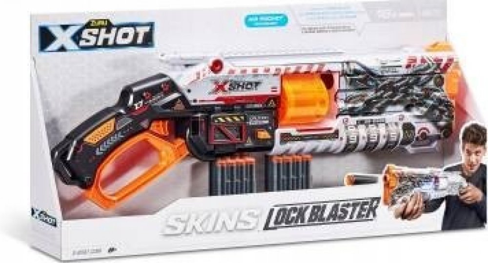 Rozměr balení cca 60 x 28 x 6,5 (D x V x Š).X-Shot Skins Lock Blaster dává sílu do vašich rukou! Každý Lock Blaster je dodáván s QR kódem, který odhalí vaši jedinečnou kombinaci zámku. Odemkněte svůj blaster a začněte se bavit! Lock Blaster má otočnou hlaveň se 6 šipkami, která prostřelí šipky během několika sekund a zasáhne cíle až do vzdálenosti 27 m / 90 stop! Až bitvy skončí, uzamkněte svůj bl...