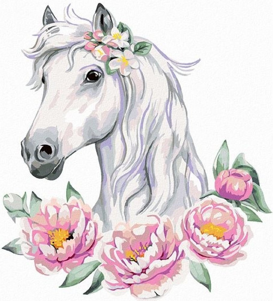 Zuty Bílý Kůn S Pivoňkami 80 x 100 cm Plátno