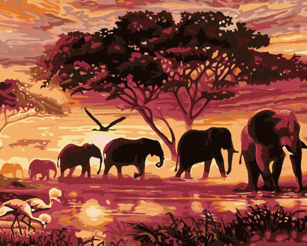Zuty Malování podle čísel AFRIKA ŽIRAFA A SLONI