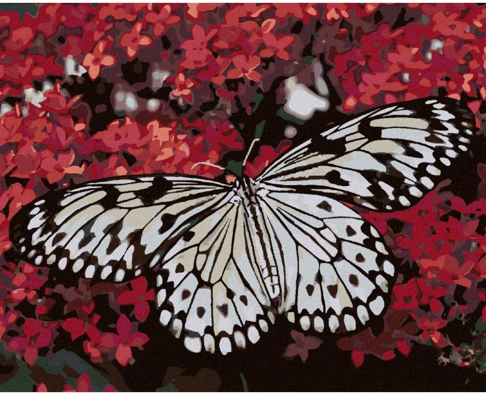 Zuty Malování podle čísel BÍLÝ MOTÝL A ČERVENÉ KVĚTINY