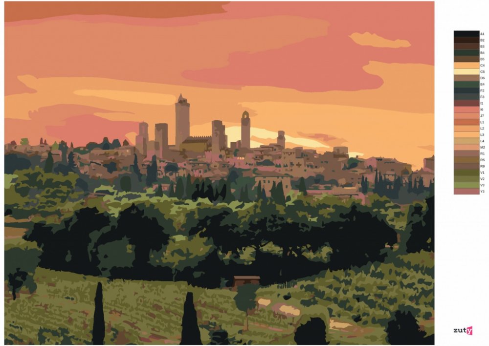 Zuty Malování podle čísel MĚSTO A ZÁPAD SLUNCE ITÁLIE TED DAVIS
