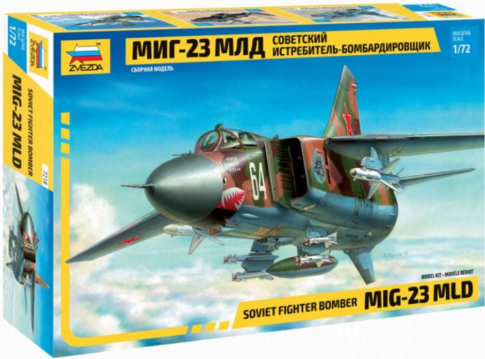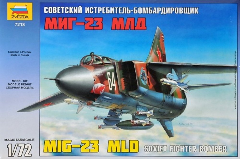 Model letadla ke slepení. Velikost: 1:72; 23,5 cm. Balení obsahuje: 69 dílků ke slepení. Podrobný popis:Model letadla ke slepení. Velikost: 1:72; 23,5 cm. Balení obsahuje: 69 dílků ke slepení. Informace o originálu: Sovětský stíhací bombardér MIG-23 MLD Nejmodernější varianta MiGu-23 byla vytvořena na konci 70. let. Vylepšena byla konstrukce jeho trupu a stroj dostal také pokročilé elektronické vy...