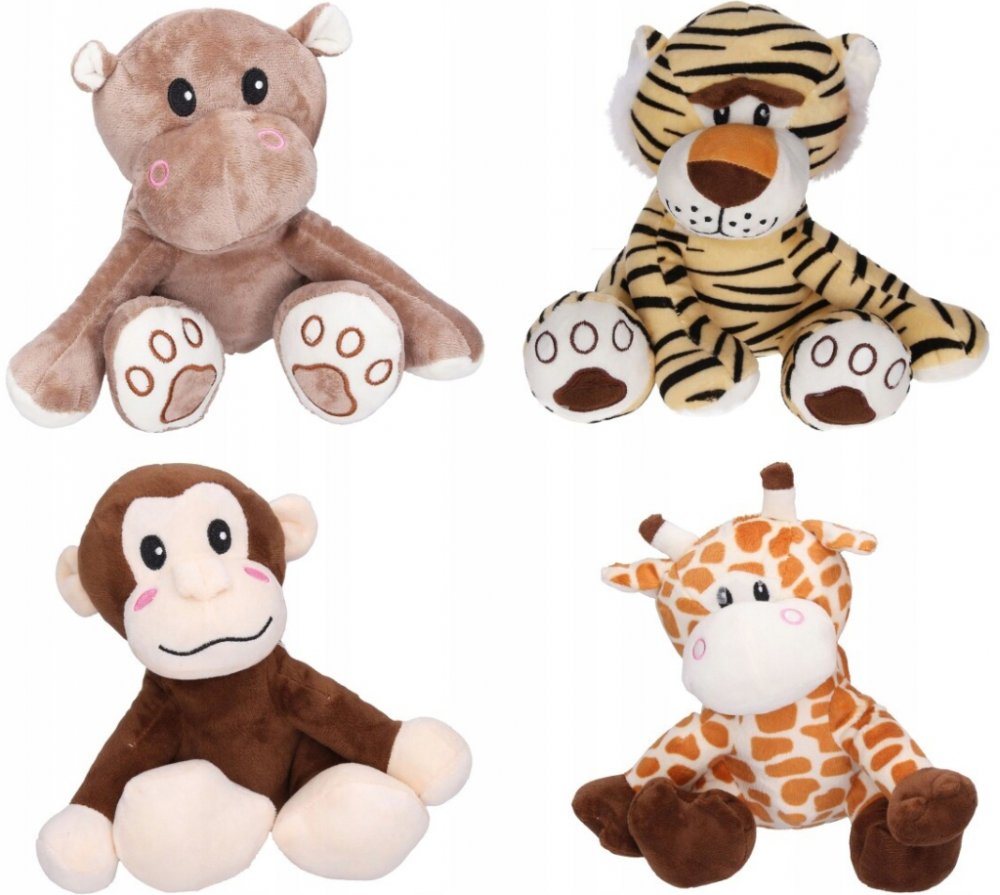 Zvířátka 22 cm 4 Varianty - Žirafa Opice Tygr Hroch