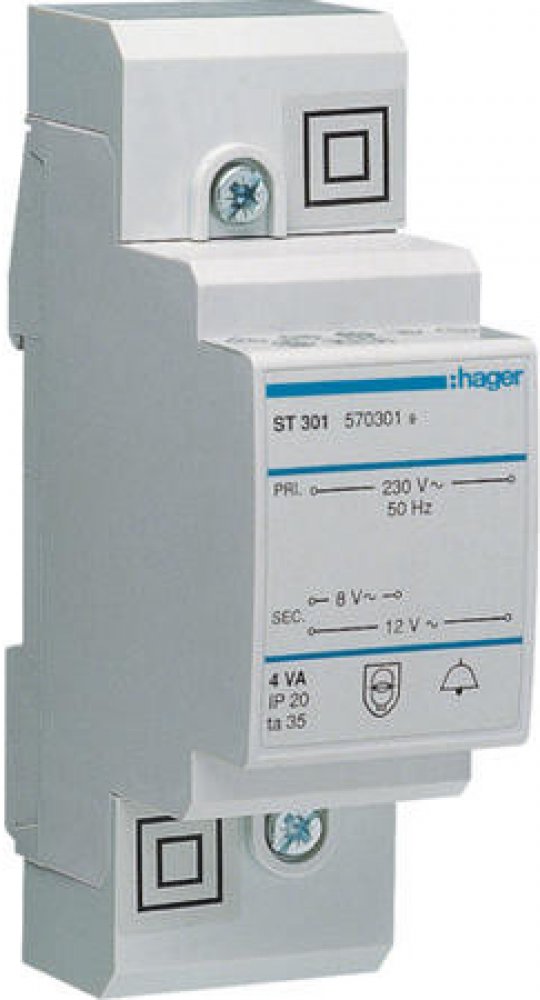 Zvonkový transformátor hager ST301 230V/8V+12V 4VA