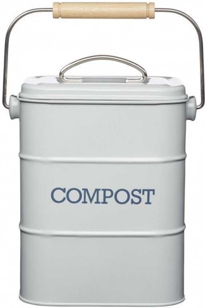 Vintage šedý plechový kompostér obsahuje integrovaný uhlíkový absorpční filtr a náhradní filtr. Ke kompostéru jsme byli spíše skeptičtí. Po jeho osobním odzkoušení jsme nadšení. Uhlíkový filtr nepropustí žádné nežádoucí pachy, velikost nádoby je dostačující.