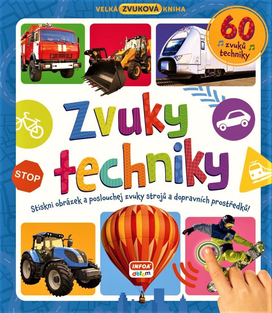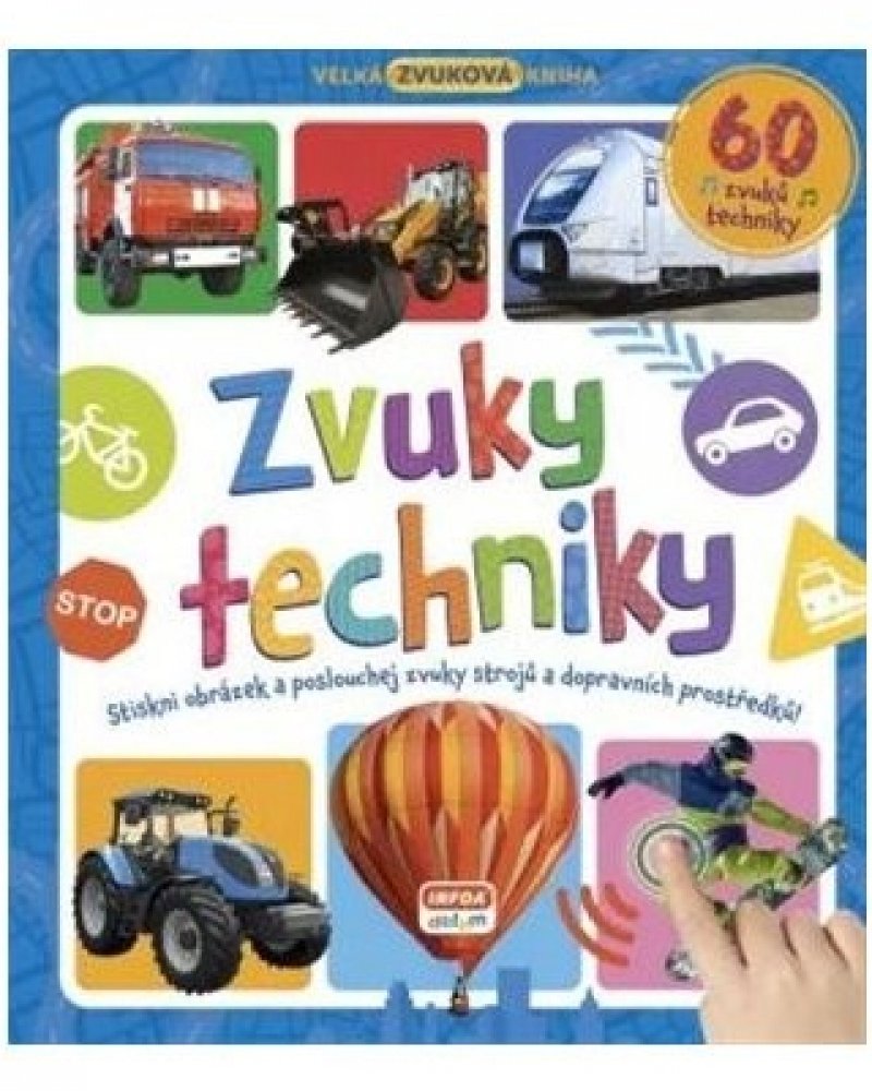 Stiskni obrázek a poslouchej zvuky strojů a dopravních prostředků.Zvuky se aktivují stisknutím žlutého tlačítka na každé dvoustránce. Pak už se jen stačí dotknout bílého kroužku u každého obrázku a zaposlouchat se do realistických zvuků, které vydávají různá vozidla a další stroje.Obsahuje mnoho zajímavostí o vozidlech.Tato barevná knížka seznámí děti s technikou a dopravními prostředky. Poutavé f...