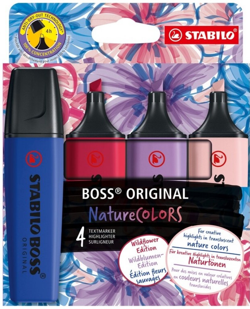 Zvýrazňovač STABILO BOSS ORIGINAL NatureCOLORS Wildflower - sada 4 ks