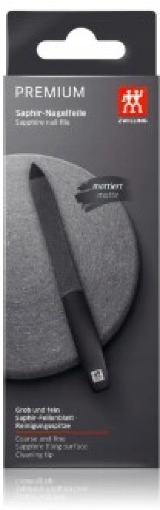 Pilník má hrubozrnnou a jemnozrnnou stranu pro zkracování a vyhlazování nehtů a špičku pro jejich čištění. Díky sofistikovanému provedení ergonomicky dokonalé řady Twinox® M s inovativním diamantovým uhlíkovým povlakem a větší šířkou úchopu je pevnost a odolnost proti poškrábání a také ještě zvětšena snadnost použití safírového pilníku na nehty. Tímto způsobem dosahují přístroje řady Twinox® M absolutního maxima funkčnosti a trvanlivosti v nadčasovém, mužském stylu.