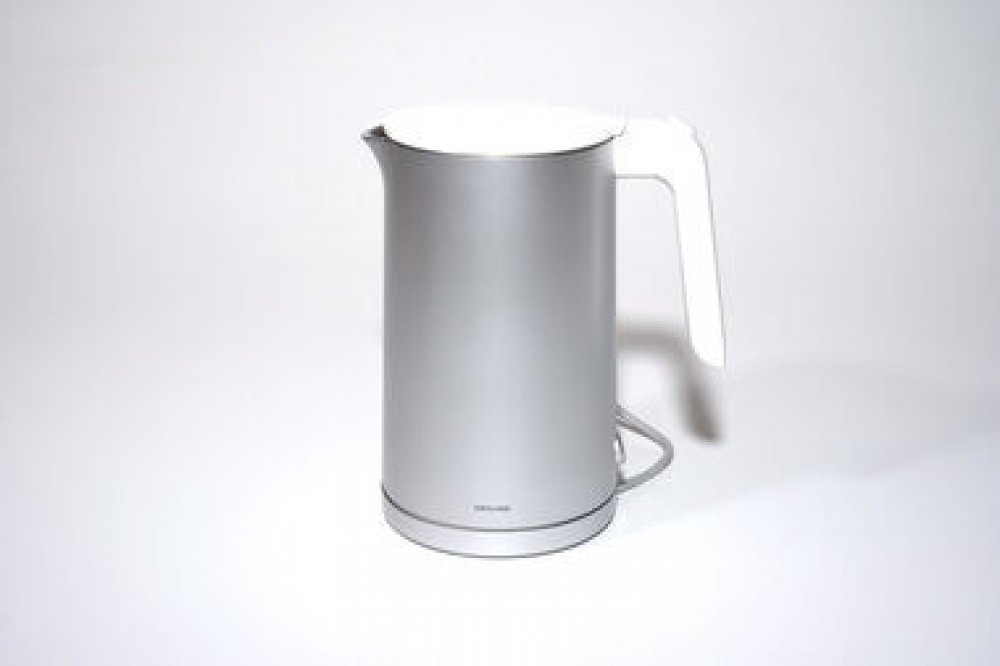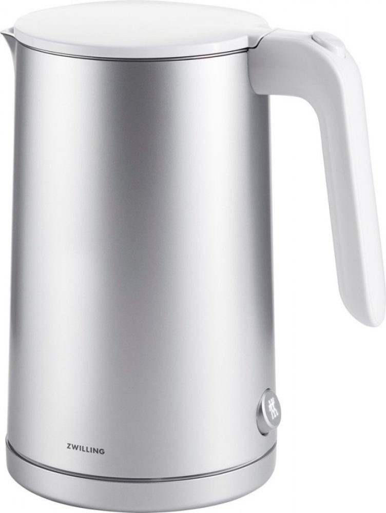 Rychlovarná konvice Enfinigy značky Zwilling o objemu 1,5 l je vyrobena z nerezové oceli. Konvice má integrovaný filtr na vodní kámen, také částečně vyroben z hygienické nerezové oceli. 70° otevírání víka konvice zabraňuje přímému kontaktu s horkou vodní párou. Dvouplášťové pouzdro uchovává vodu uvnitř déle teplou. Disponuje automatickým vypnutím po dovaření vody.