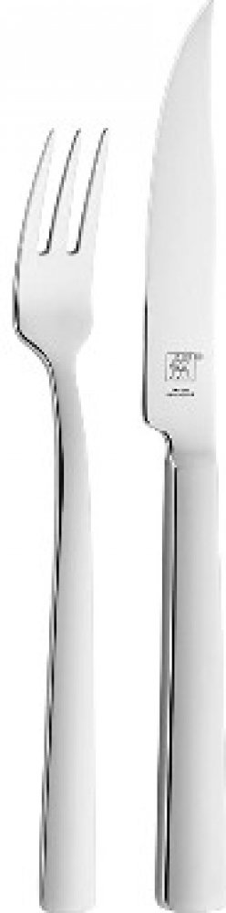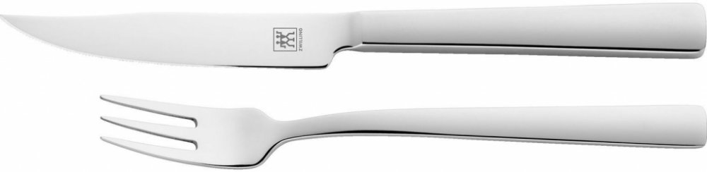 Dvoudílná sada příborů Zwilling Dinner na steaky 230 mm Dvoudílná steaková sada z řady ZWILLING Dinner je mimořádně funkčním a stylovým doplňkem k základnímu příboru. Šťavnaté steaky bezpečně udrží tři špičaté vidličky, zatímco nůž s ostrým vroubkovaným ostřím bez námahy prořízne grilovaný pokrm. Speciální příbor je celý vyroben z leštěné nerezové oceli 18/10, a proto jej lze mýt v myčce nádobí. D...