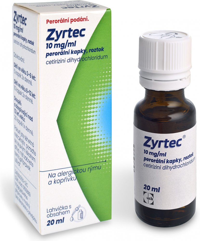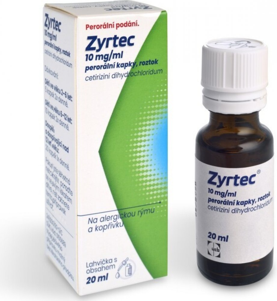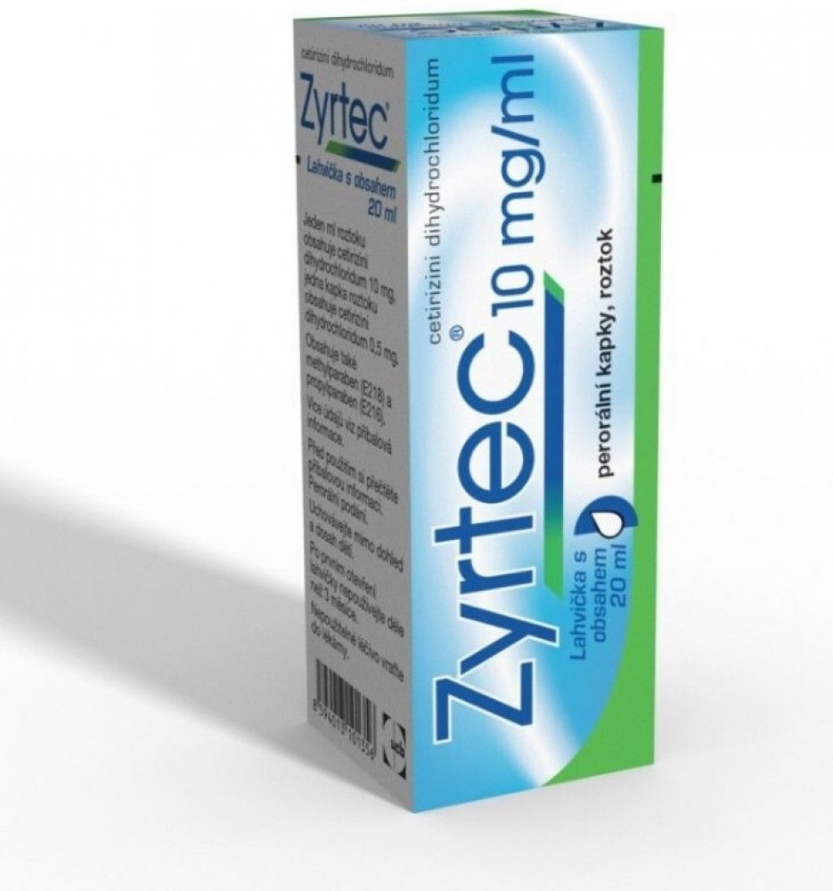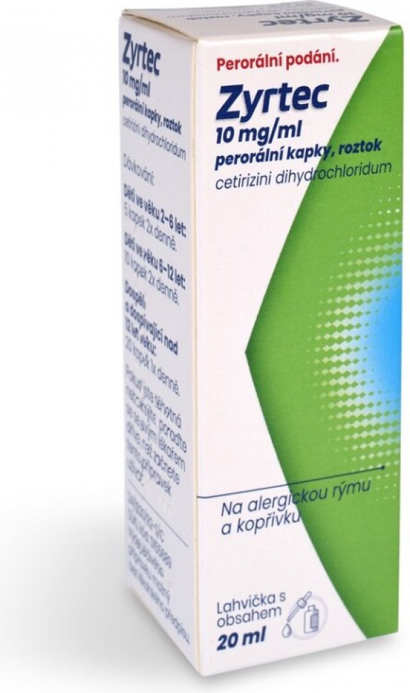 Zyrtec 10 mg/ml perorální kapky jsou antialergikum obsahující cetirizin-dihydrochlorid. Používají se u dospělých a dětí od 2 let ke zmírnění příznaků alergické rýmy (nosní a oční příznaky) a kopřivky. Přípravek se dávkuje podle věku pacienta, s obvyklou dávkou 20 kapek jednou denně pro dospělé. Mezi nejčastější nežádoucí účinky patří ospalost, bolest hlavy a únava.